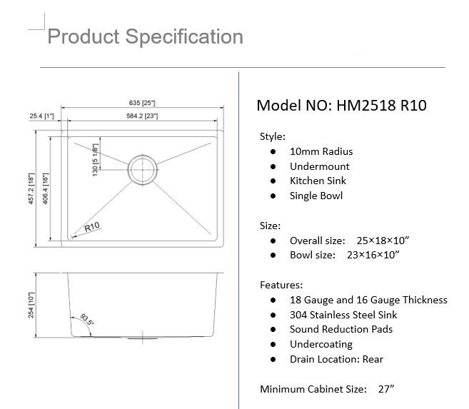 - Material:304 Type Stainless Steel-Premium grade of stainless steel, the best formulation for residential sink manufacturing; non-porous, hygienic, rust-free, and durable
